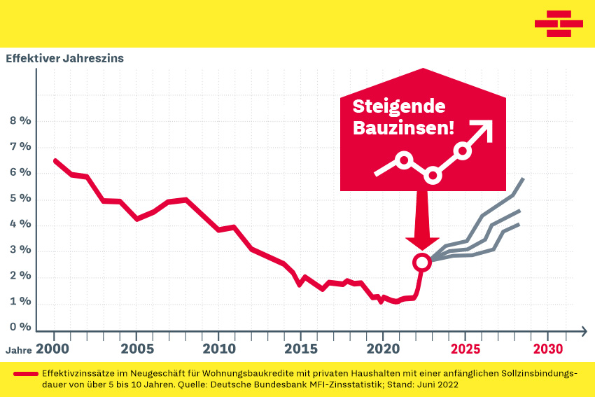 Die Finanzierung eines Eigenheims ist in der Regel eine langfristige Angelegenheit. Immobilienkredite haben oft Laufzeiten von mehreren Jahrzehnten, und die Zinsen werden häufig nur für 10 oder 15 Jahre festgelegt. Danach besteht meist die Möglichkeit, den aktuellen Darlehensvertrag zu verlängern. Sei jedoch gewarnt: Nach Ablauf der ersten Zinsbindungsfrist könnten die Zinsen steigen.